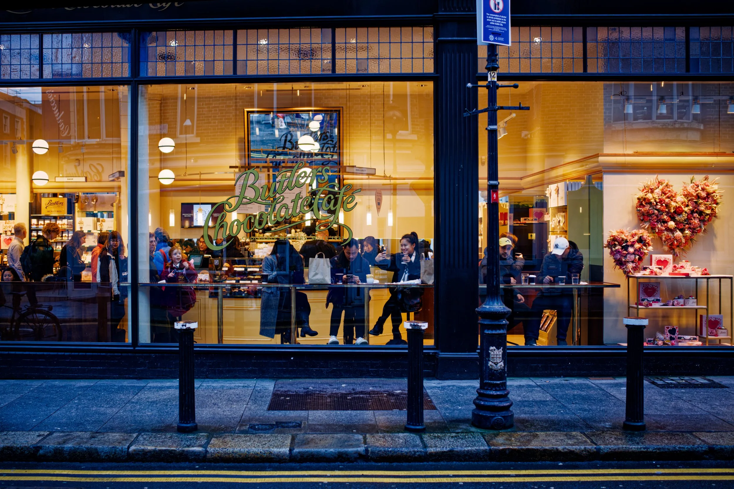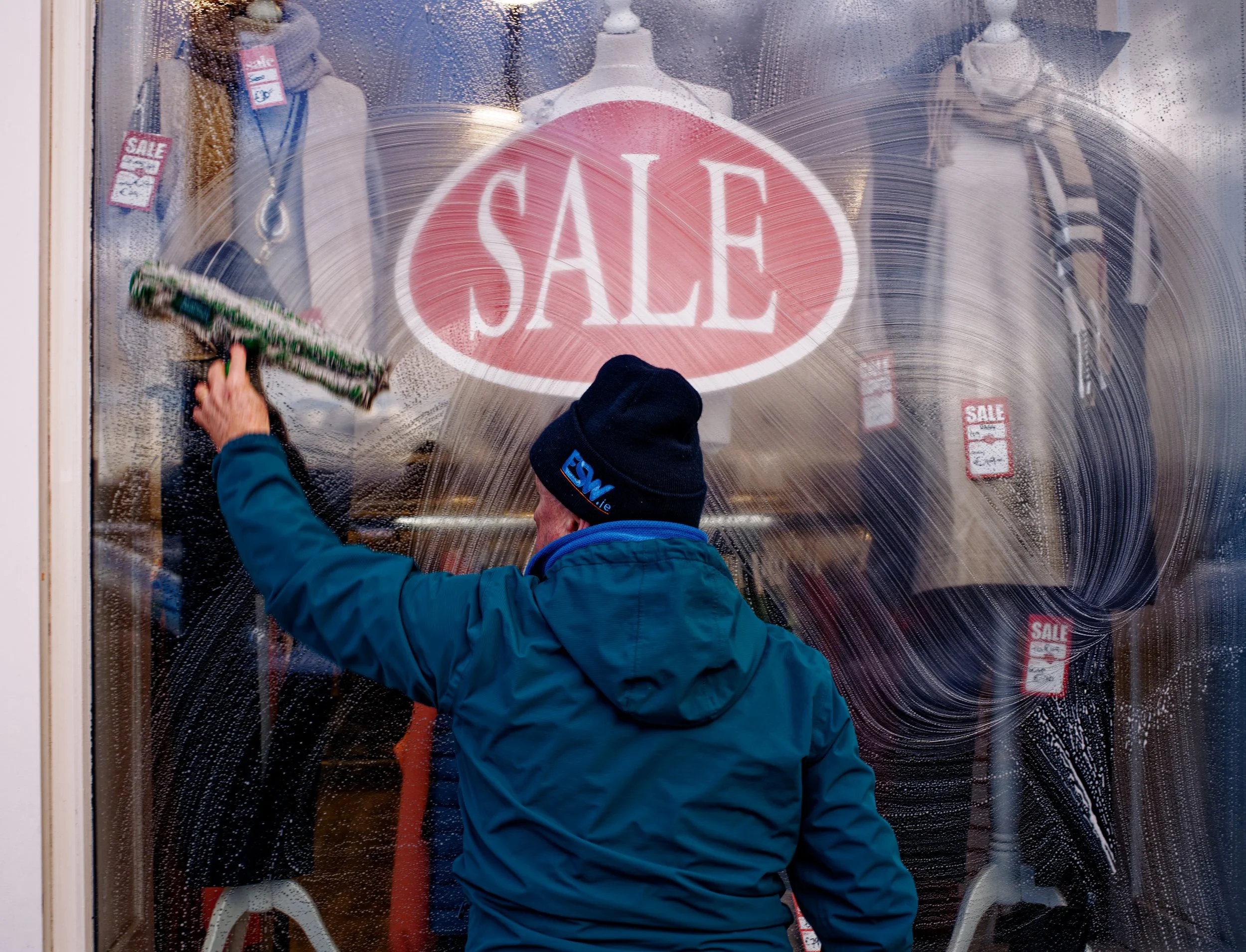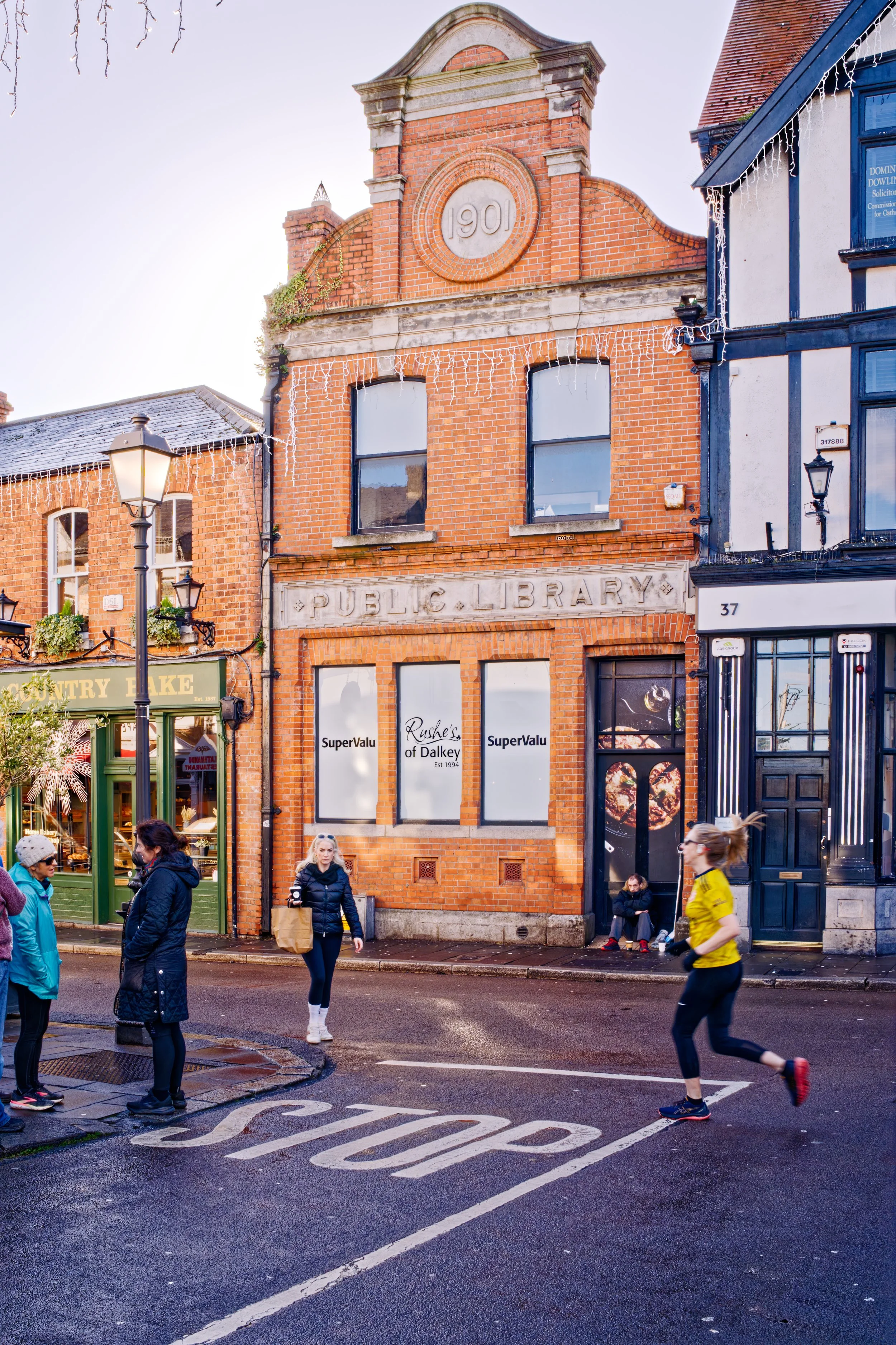 Friends chatting, a shopper and a runner, all coming together on a Sunday morning