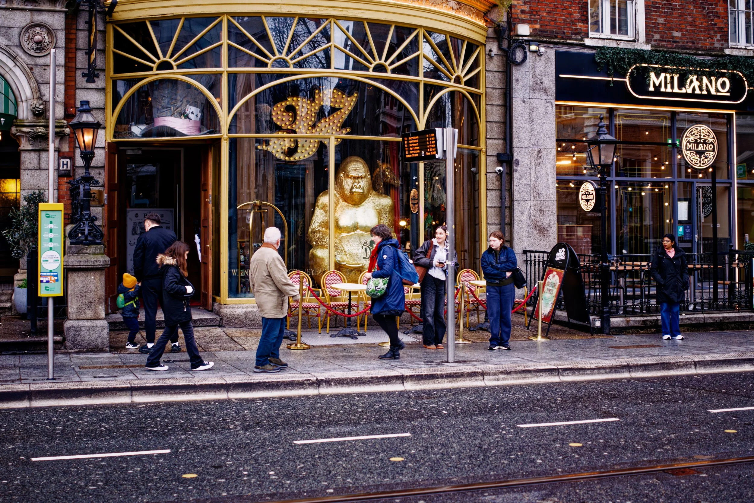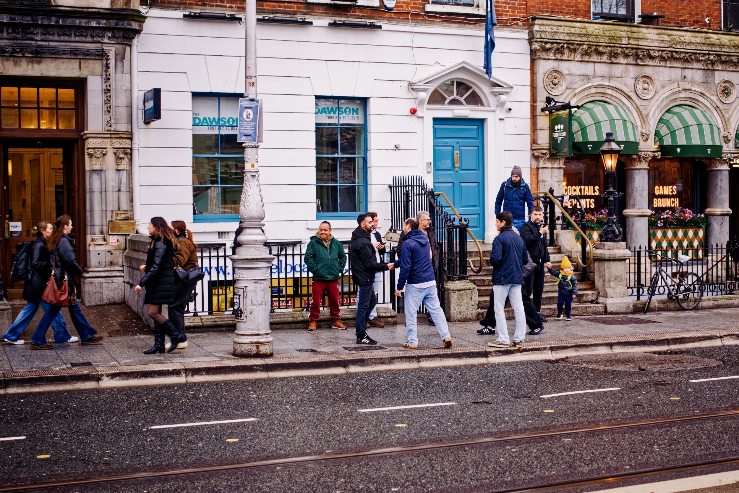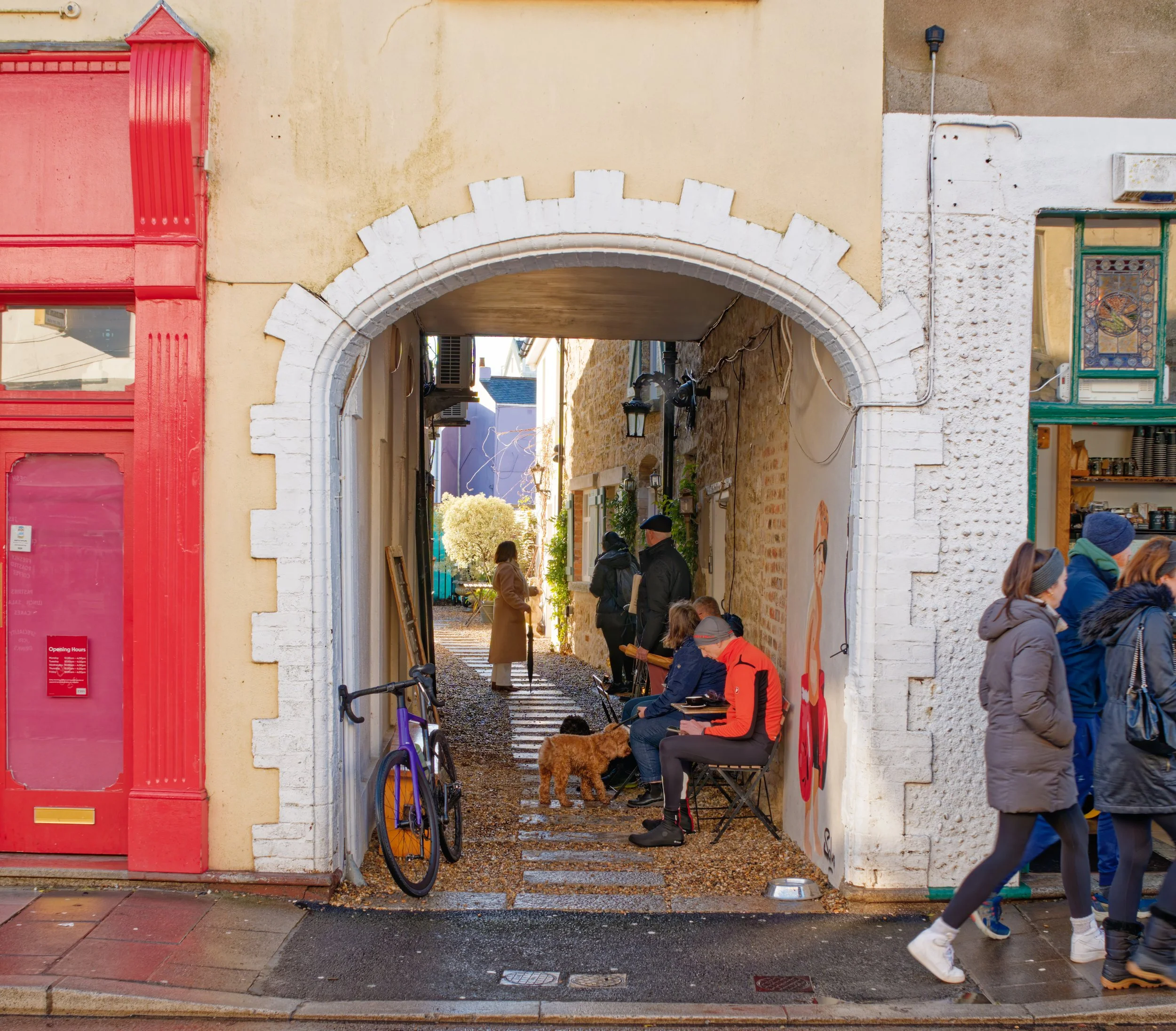 Friends chatting, a shopper and a runner, all coming together on a Sunday morning